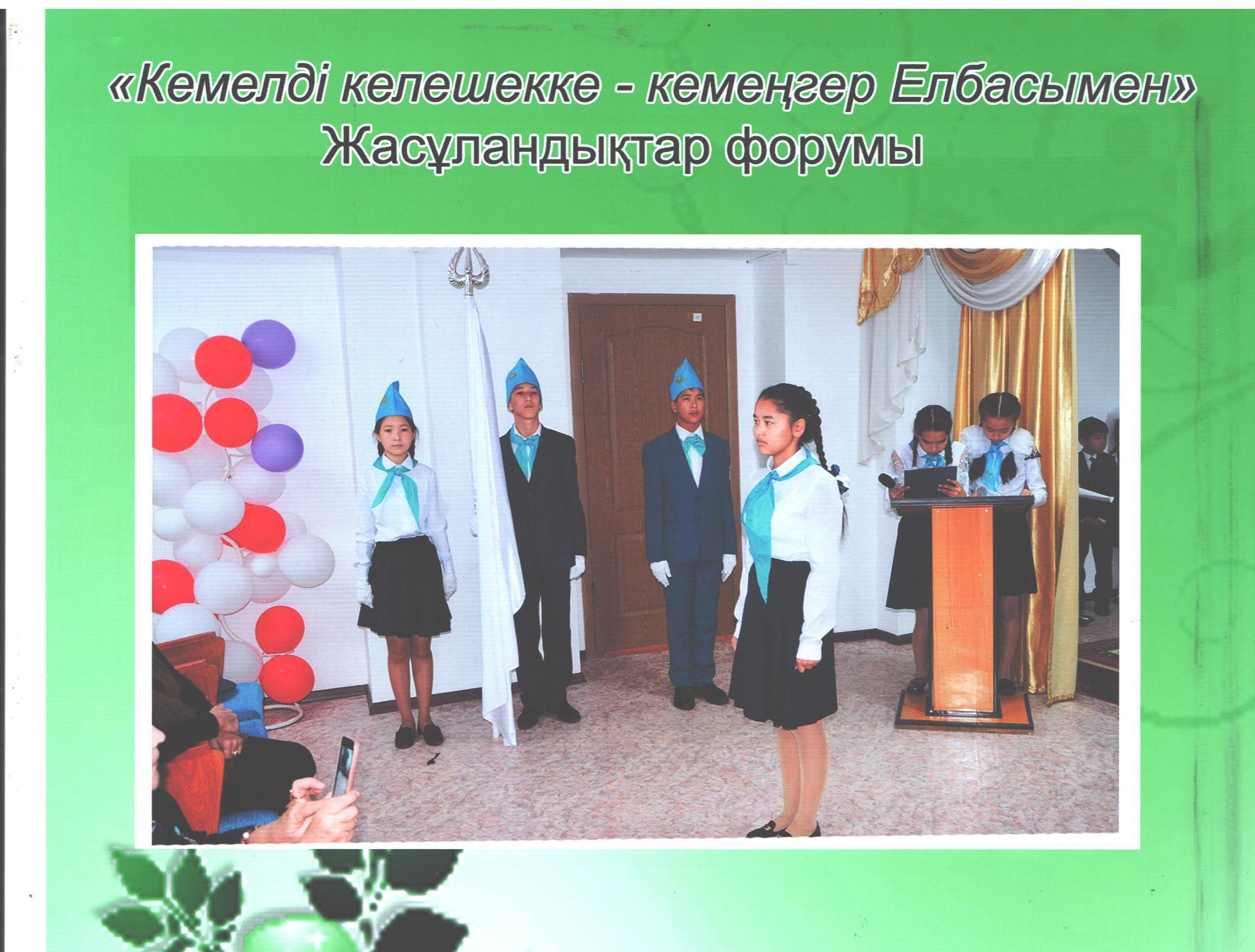Форумда Жасұландықтар сапқа тұрғызылып, «Жас Ұлан» балалармен жасөспірімдер ұйымының Туы кіргізілді. Мемлекеттік Әнұран айтылды. Мектебіміздің бастауыш сыныптарынан үздік оқушылар «Жас Қыран» қатарына қабылданып ант айтылды. Қабылдау рәсіміне ардагер ұстаздар : Л.Қ.Сатыбалдиева, З.Б.Дүйсенбаева, М.Ж.Дауренбекова қатысып, оқушыларға «Жас Қыран» төсбелігілері тағылып, ардагер ұстаздарға сөз берілді. Мектеп директоры Қ.Ж.Иманқұлова «Жас Қыран» қатарына қабылданған оқушыларды құттықтады.