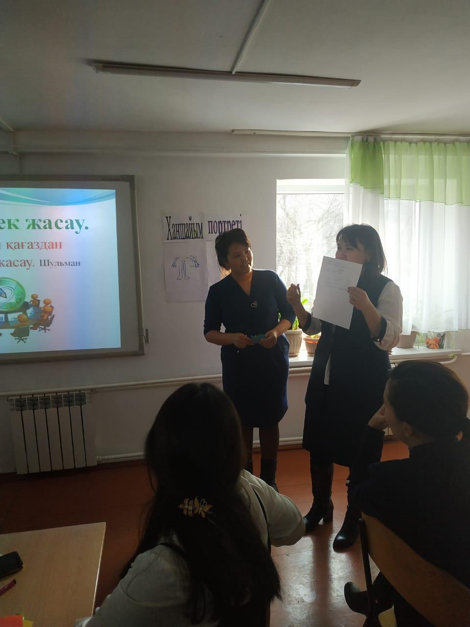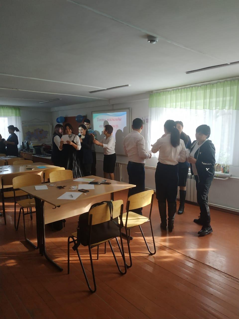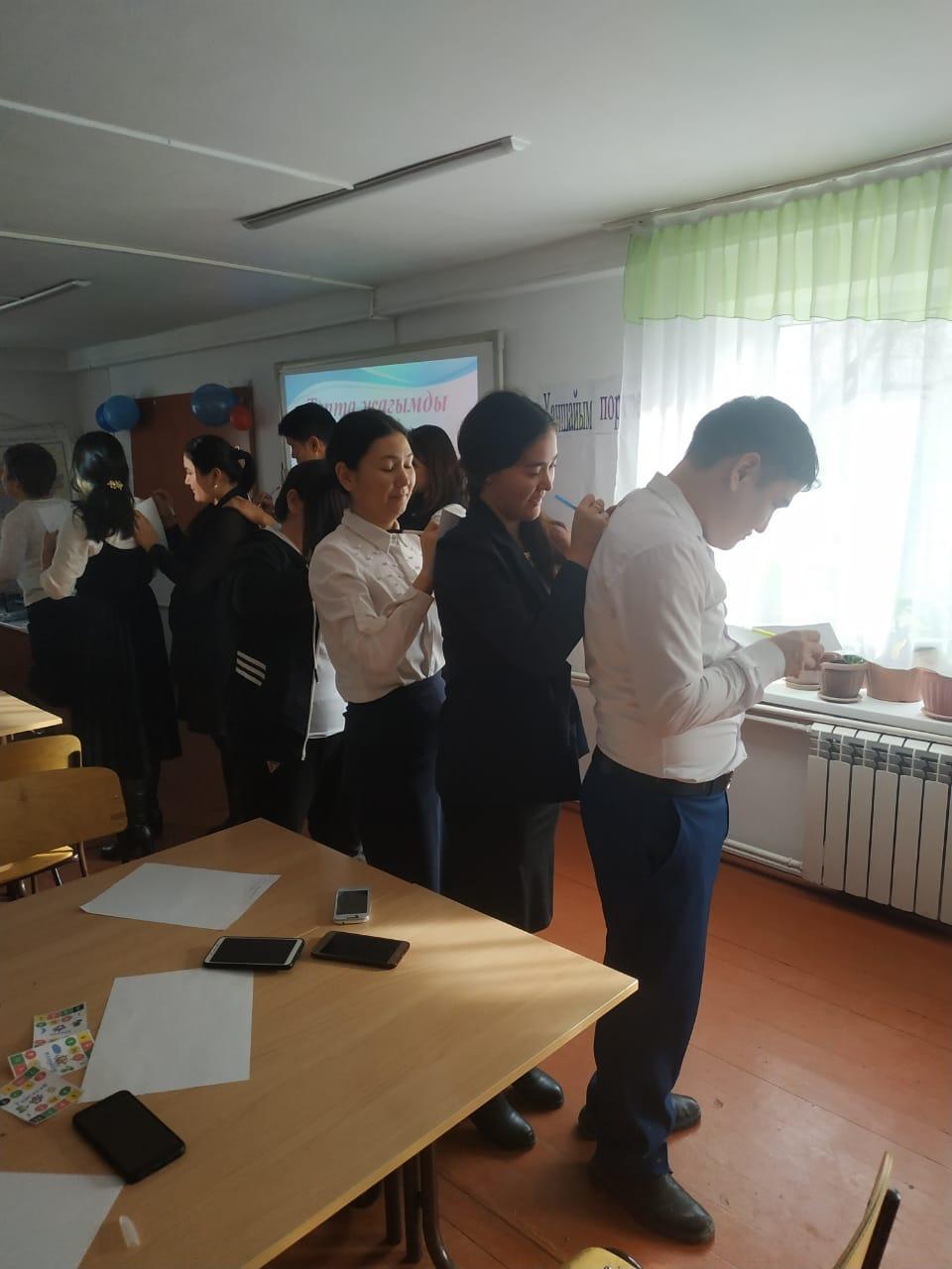 Өзін өзі тану пәні мұғалімі Мырзаханова Мархабат коучингті бастамас бұрын әріптестерімен амандасып, «Арқа қағу» тренингін жүргізді.