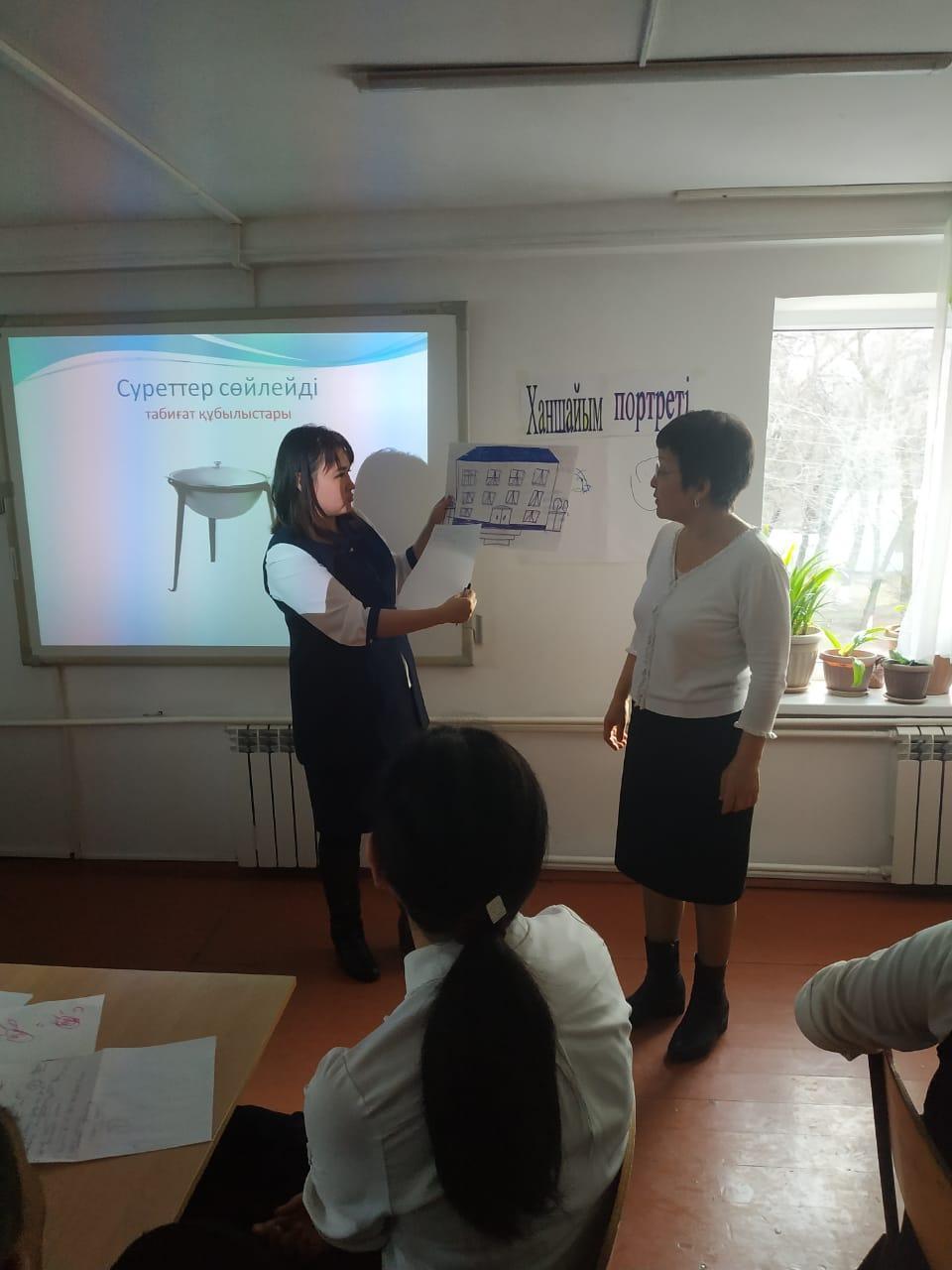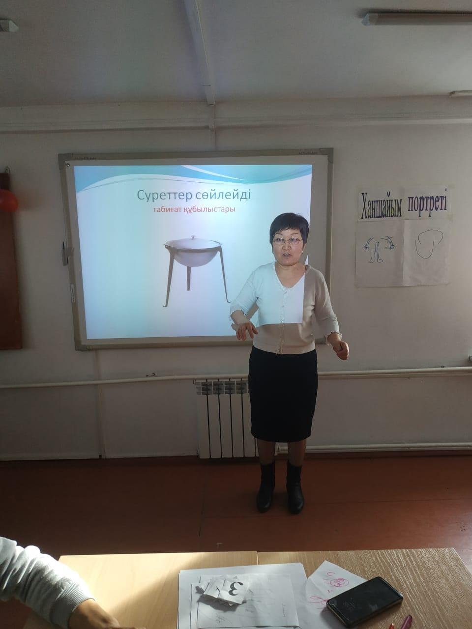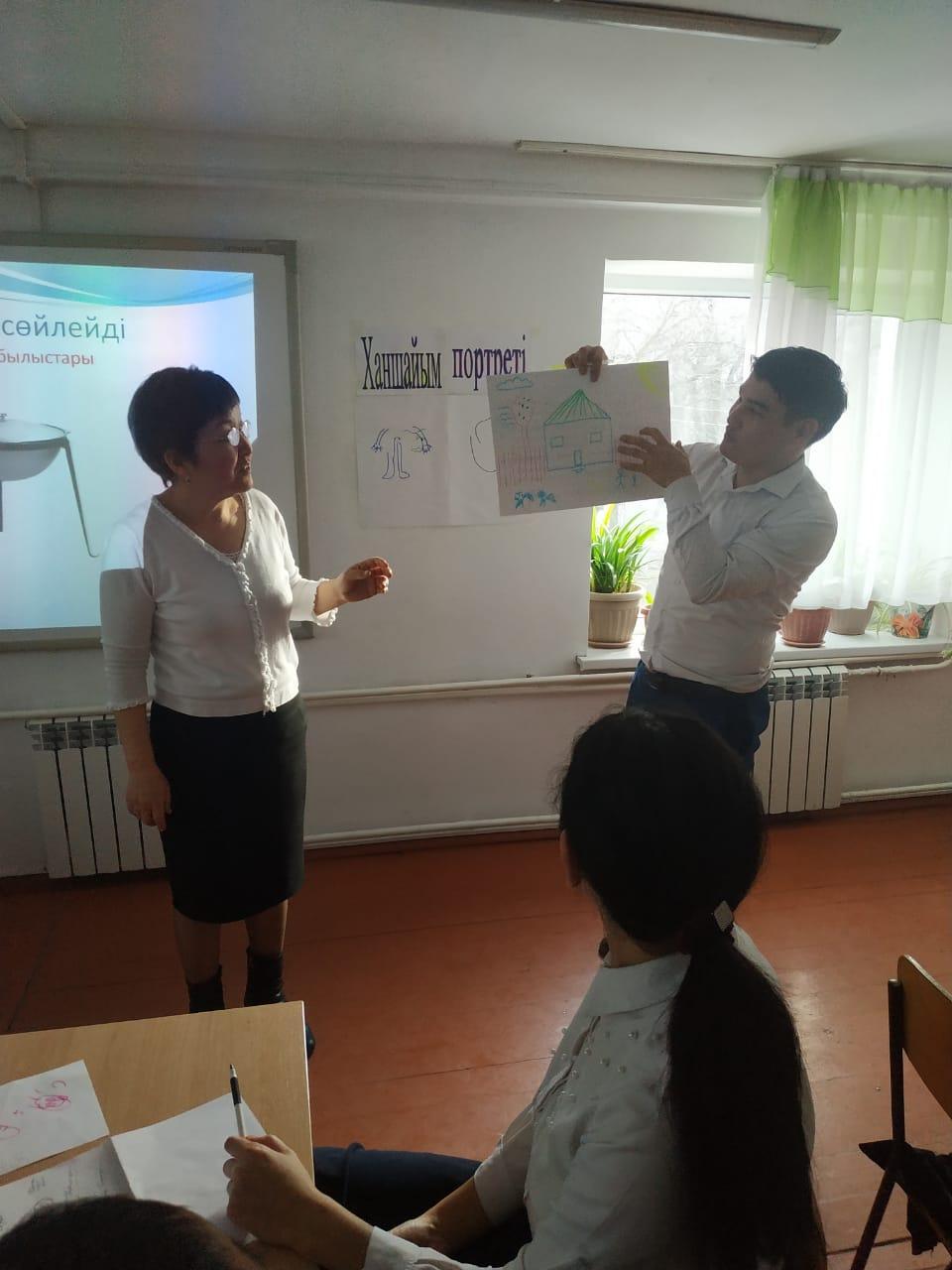 Өзін өзі тану пәні мұғалімі Мырзаханова Мархабат коучингті бастамас бұрын әріптестерімен амандасып, «Арқа қағу» тренингін жүргізді.