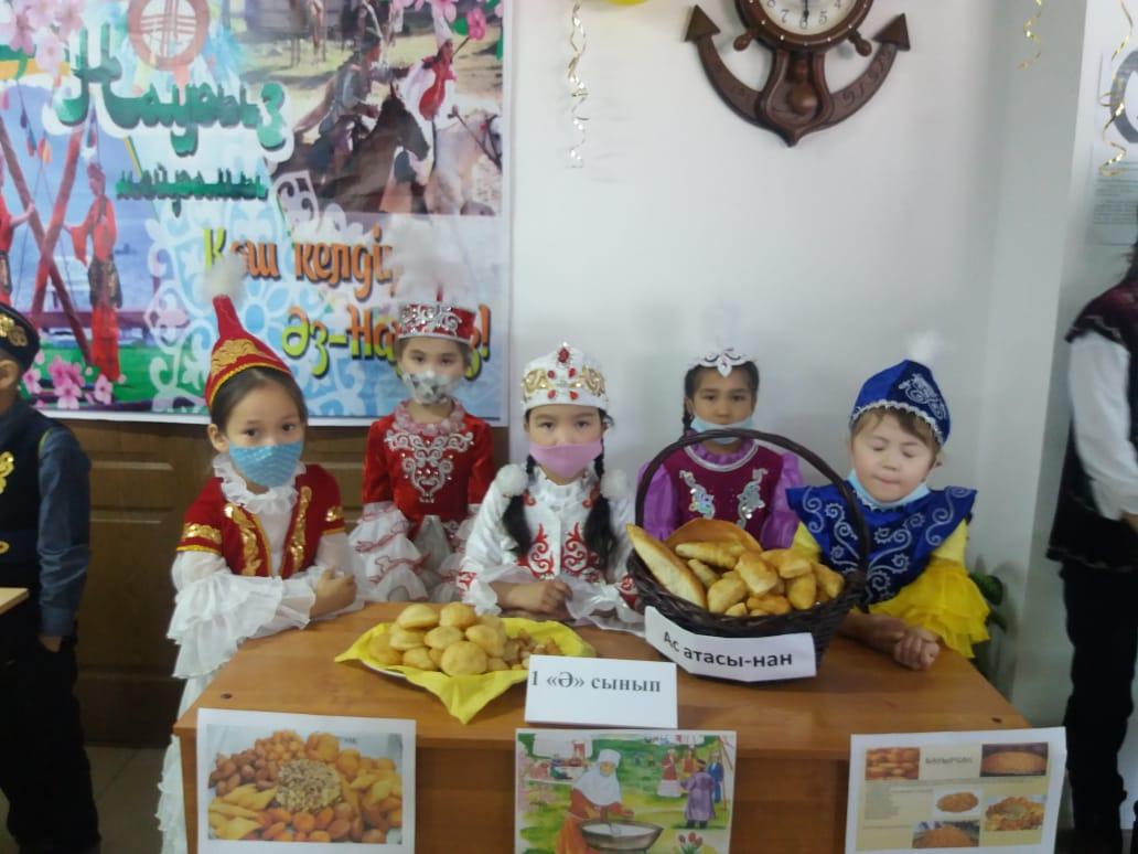 Средняя школа им.Шакирова » Іс-шаралар » С.Шәкіров атындағы орта мектебінде наурыз мерекесі қарсаңында "Бауырсақ пати" атты іс-шара өтті . Сол мерекеге 1"ә" сыныбы атсалысып қатысты. Оқушыла