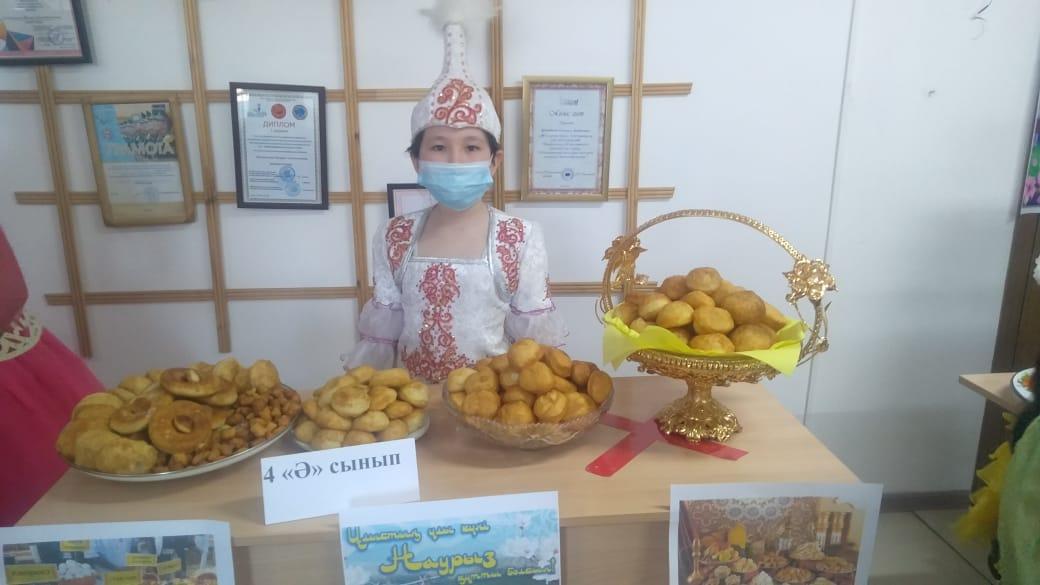 18 март 2021 0 1 2 3 4 5 Бауырсақтың жасалу жолдарын үйрету,бауырсақтың түрлеримен таныстыру мақсатында өткизилген іс- шарадан көріністен үзінді.4"ә" сынып окушысы Нияз Айаруд