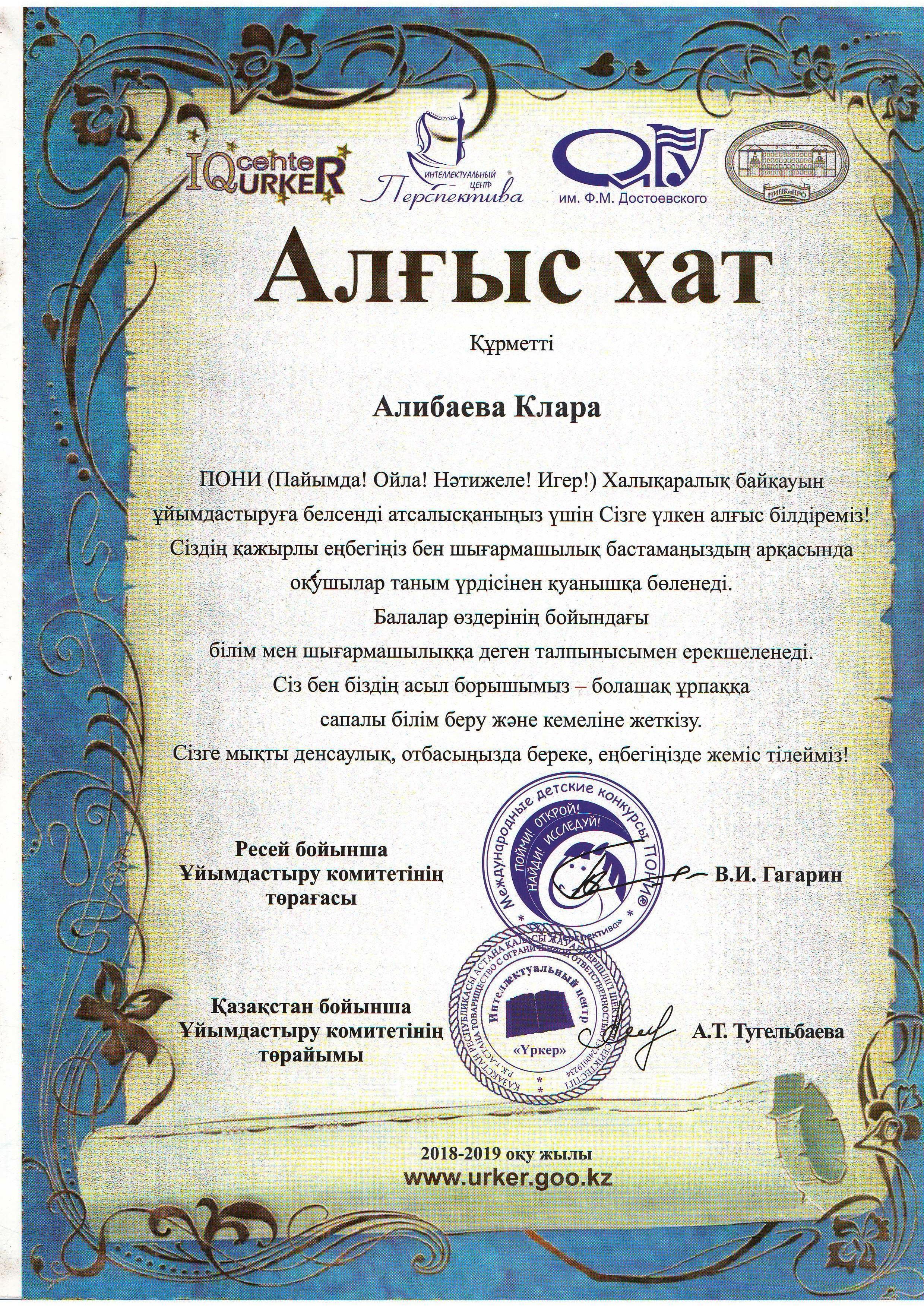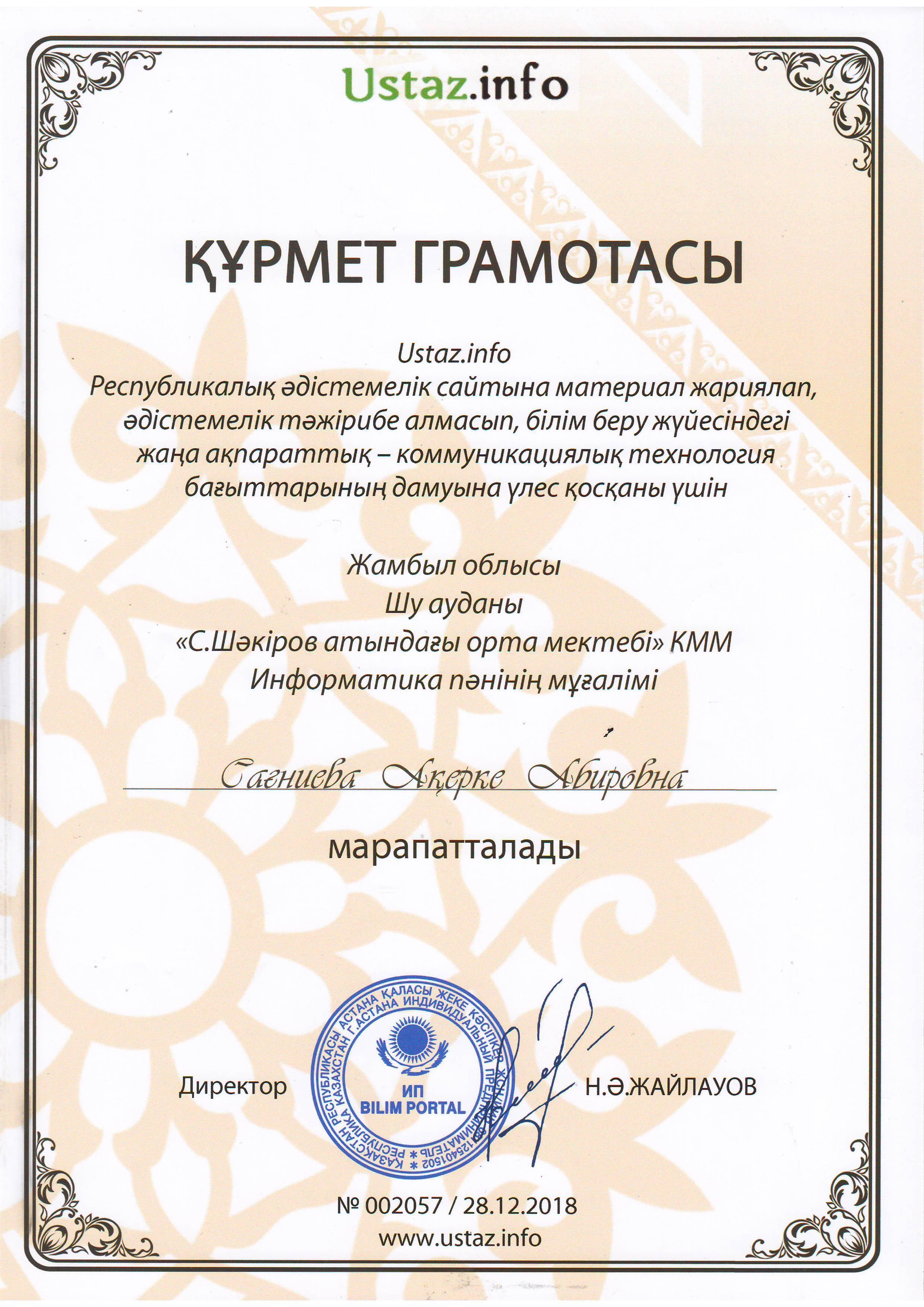 Мұғалімдер жетістігі » Средняя школа им.Шакирова. Шу ауданы. Шуский район