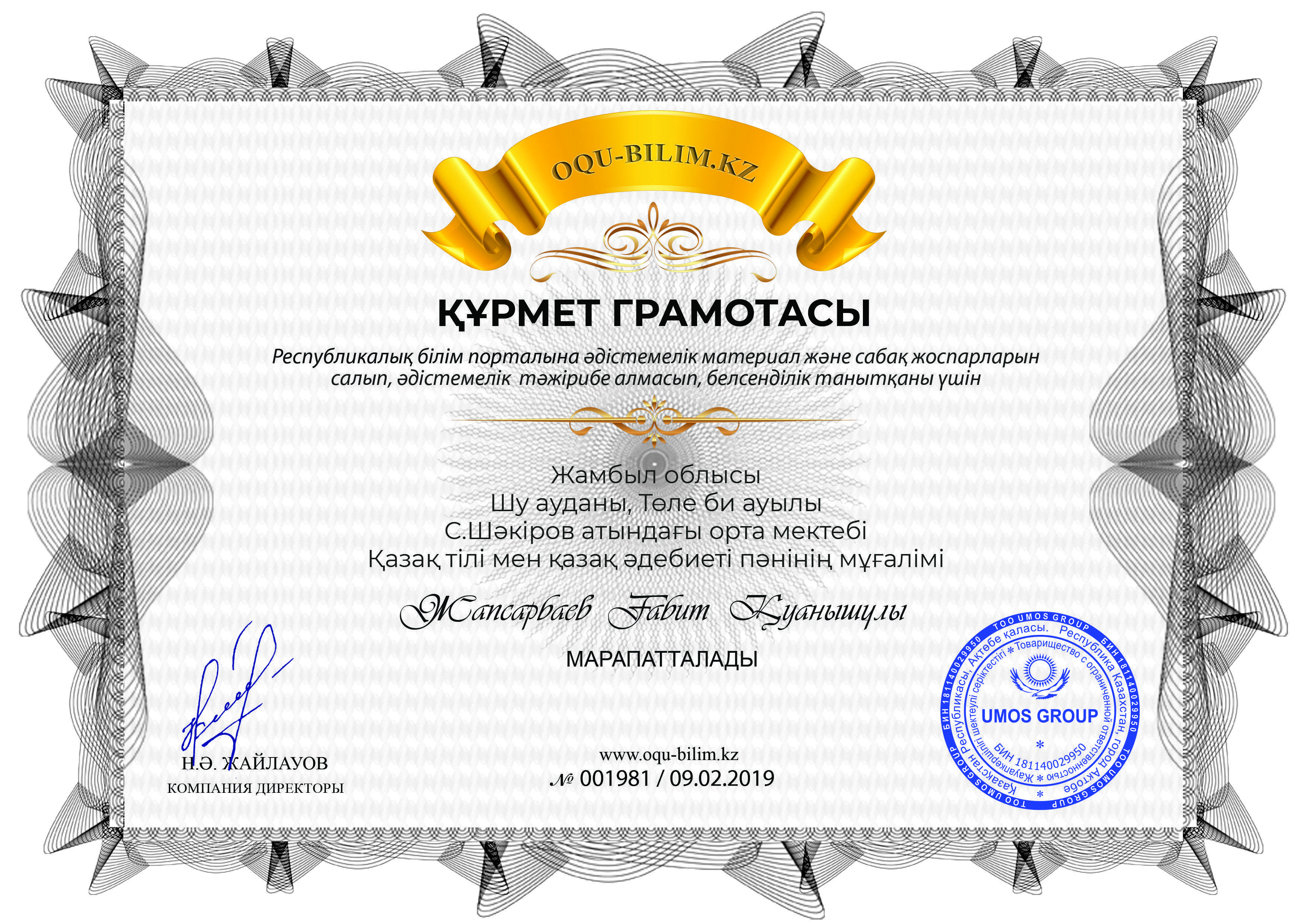 Мұғалімдер жетістігі » Средняя школа им.Шакирова. Шу ауданы. Шуский район