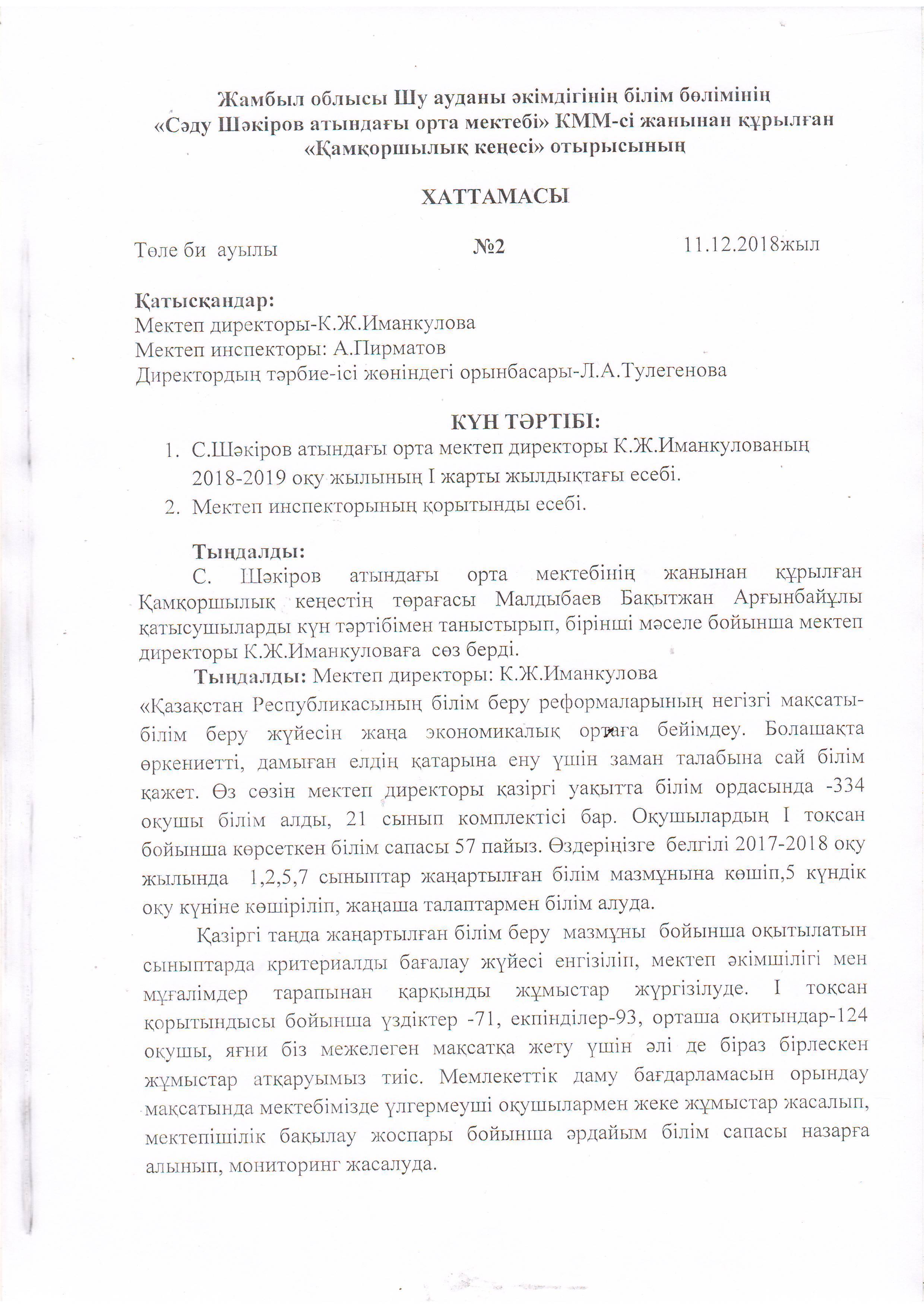 Қамқоршылық кеңес хаттамалары » Средняя школа им.Шакирова. Шу ауданы. Шуский район