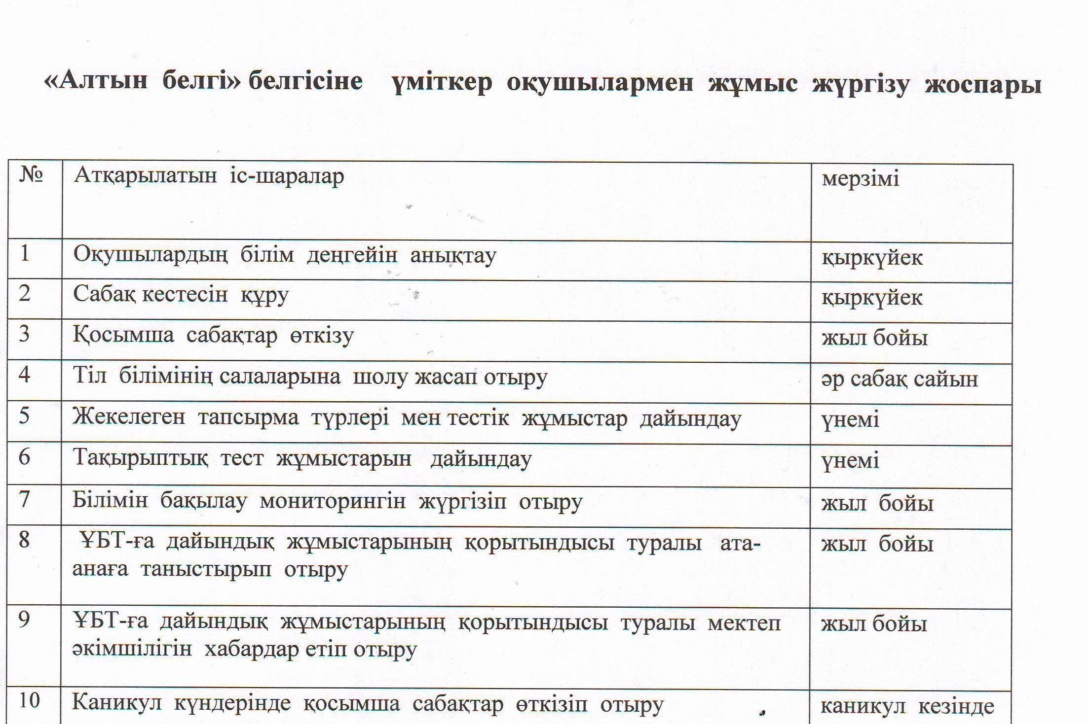 15. «Алтын белгіге» үміткер оқушы және үлгермейтін оқушымен жұмыс есебі