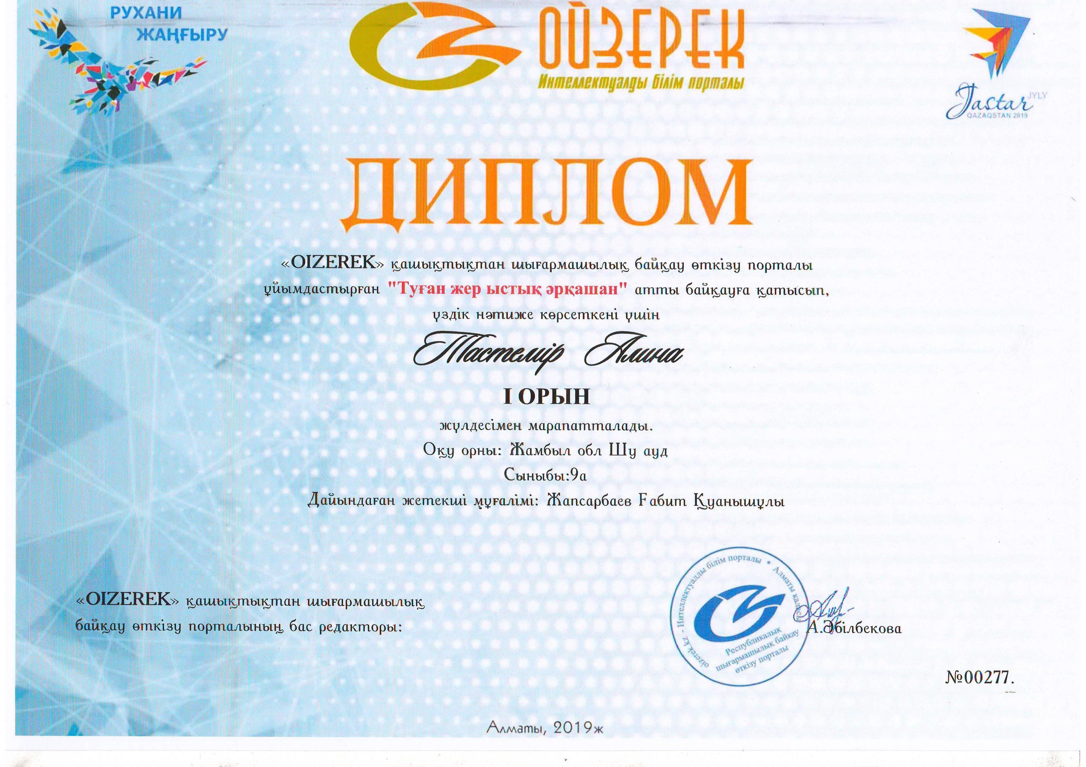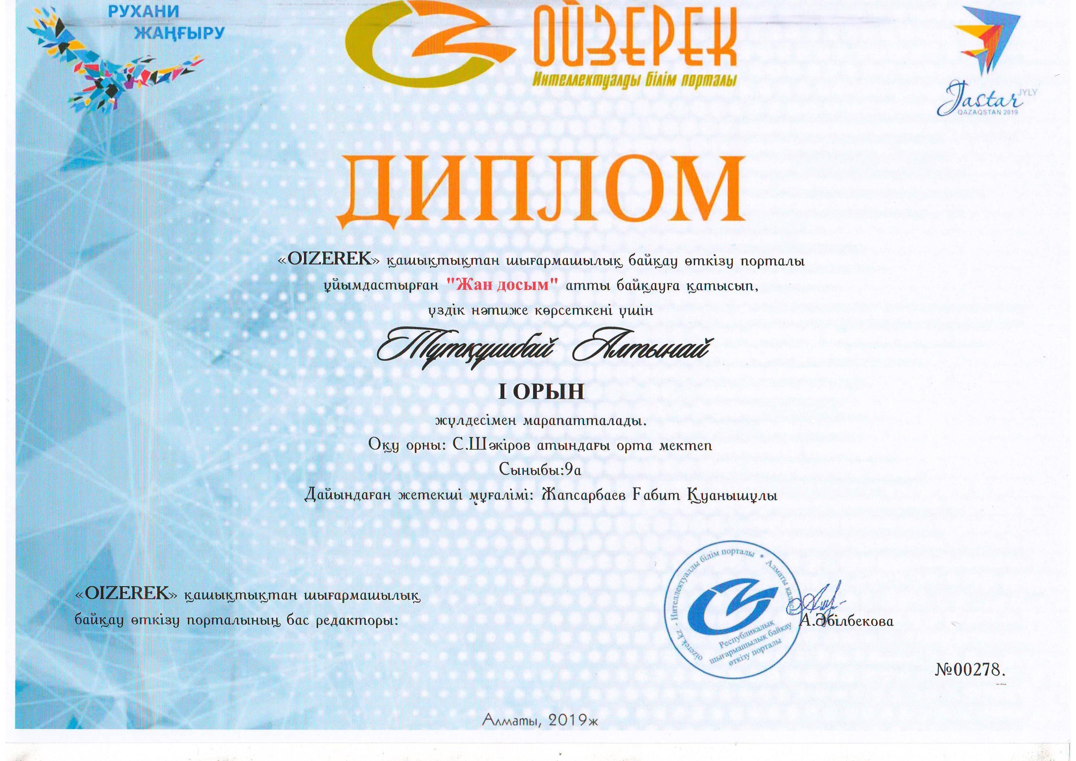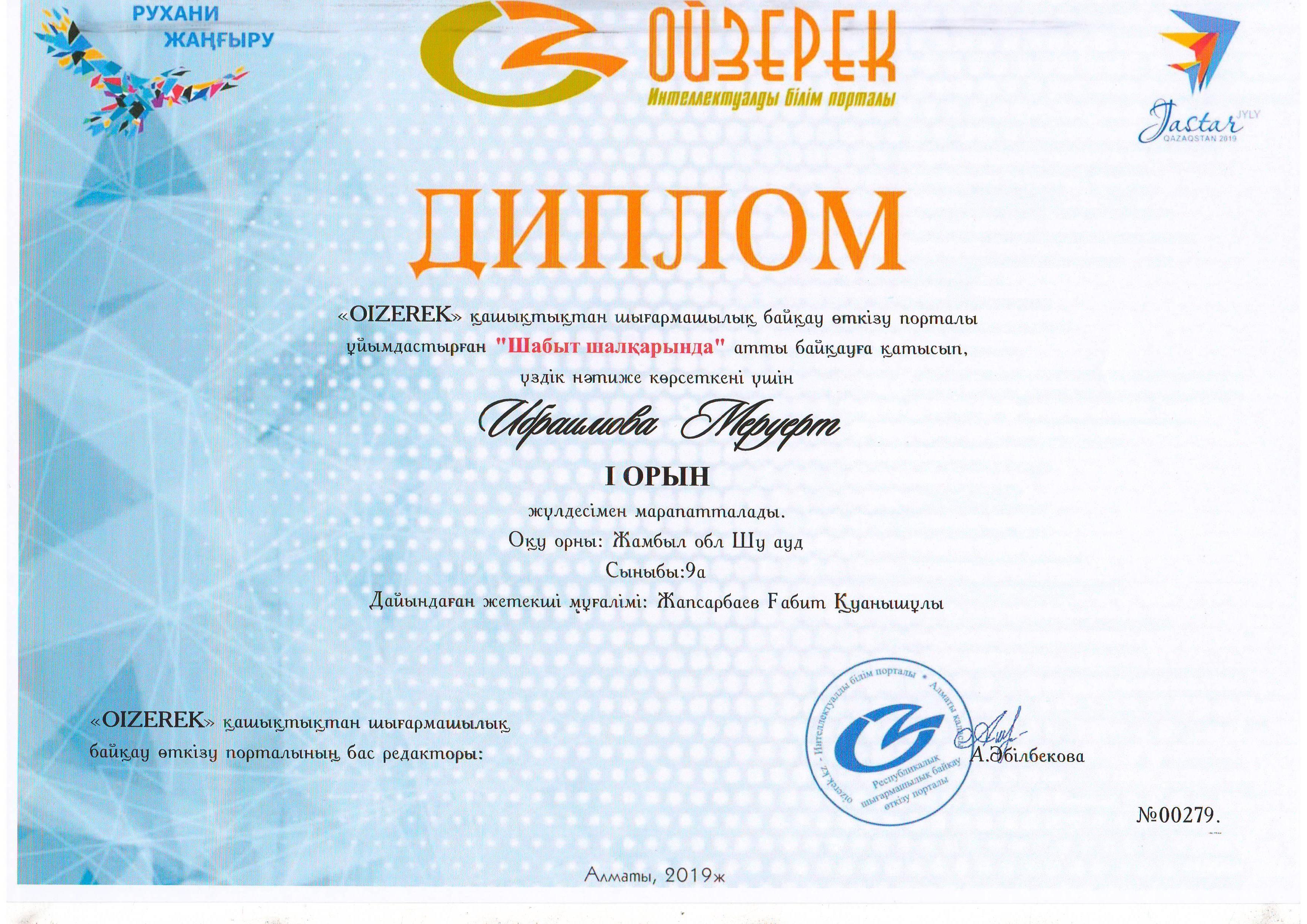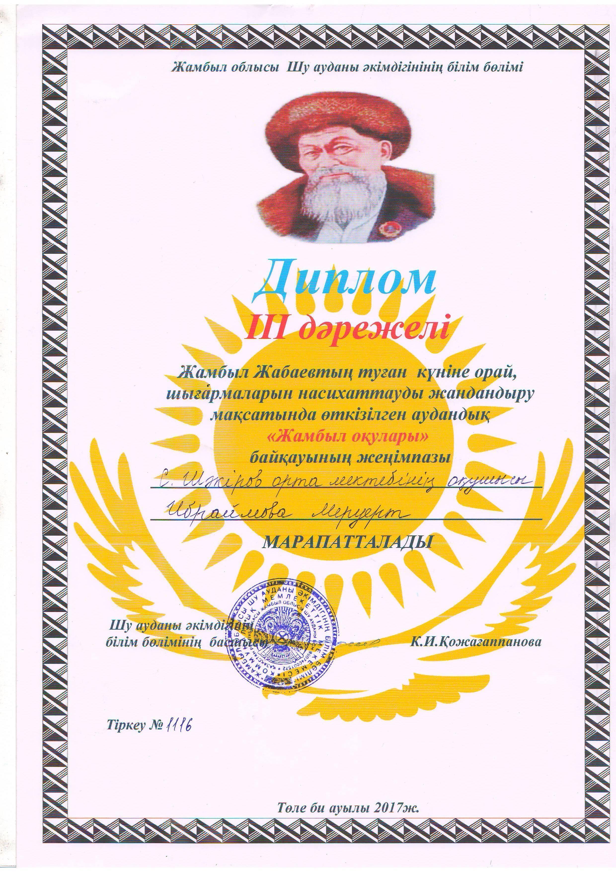 Оқушылар жетістігі » Средняя школа им.Шакирова. Шу ауданы. Шуский район