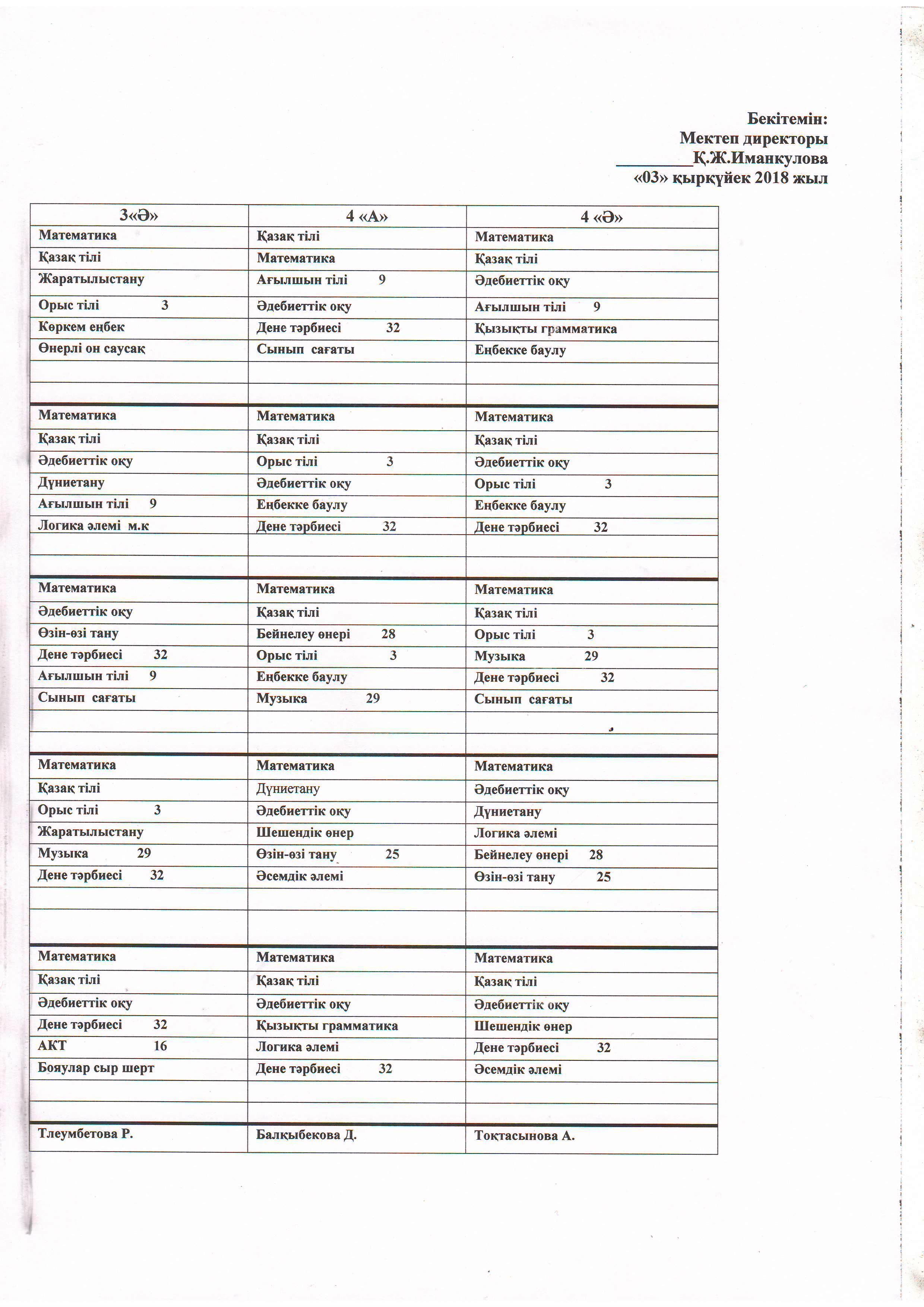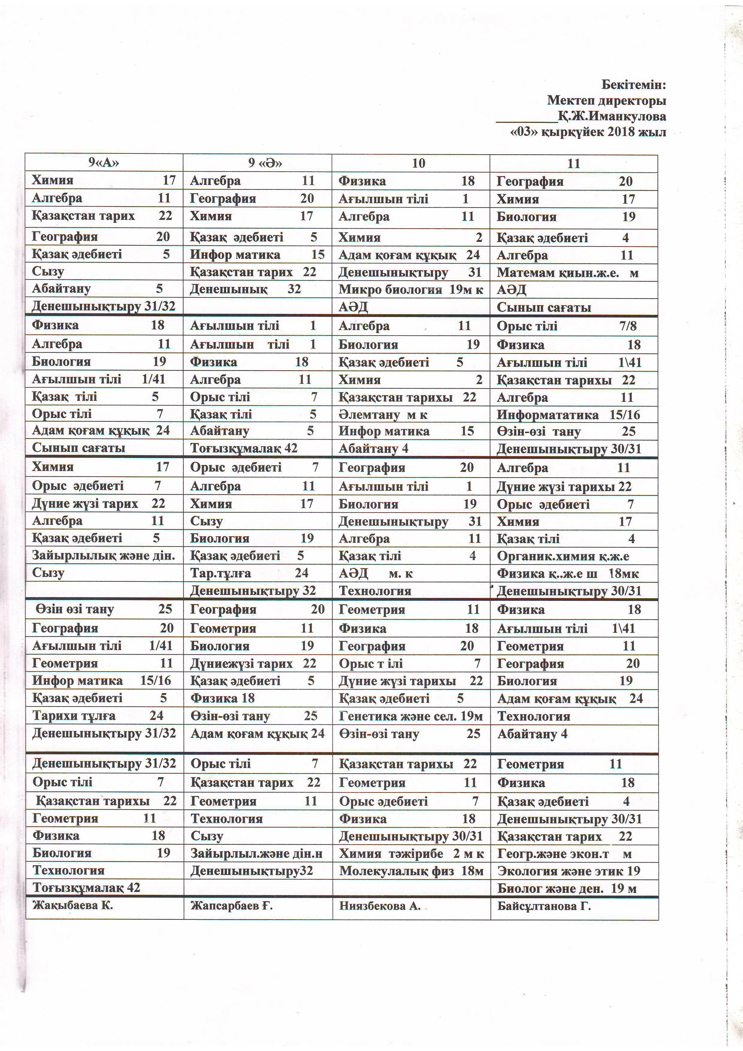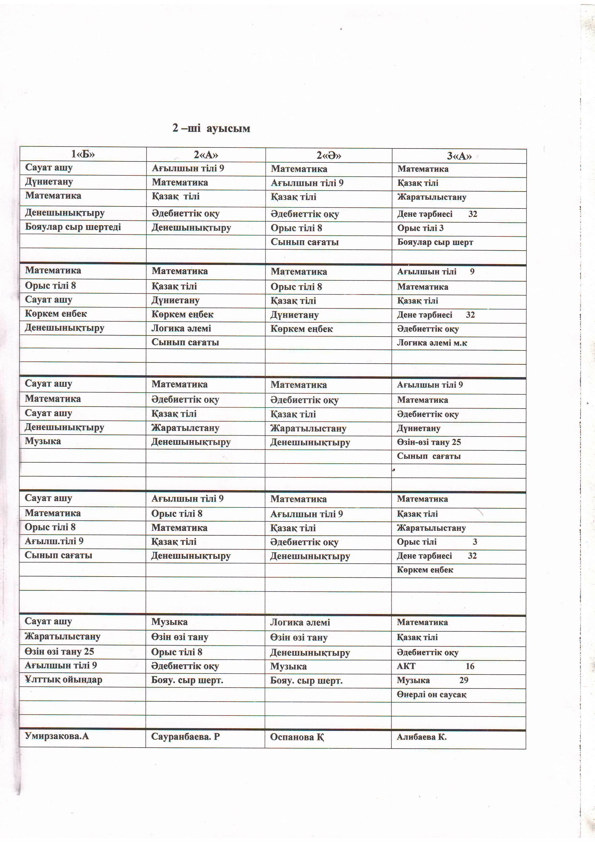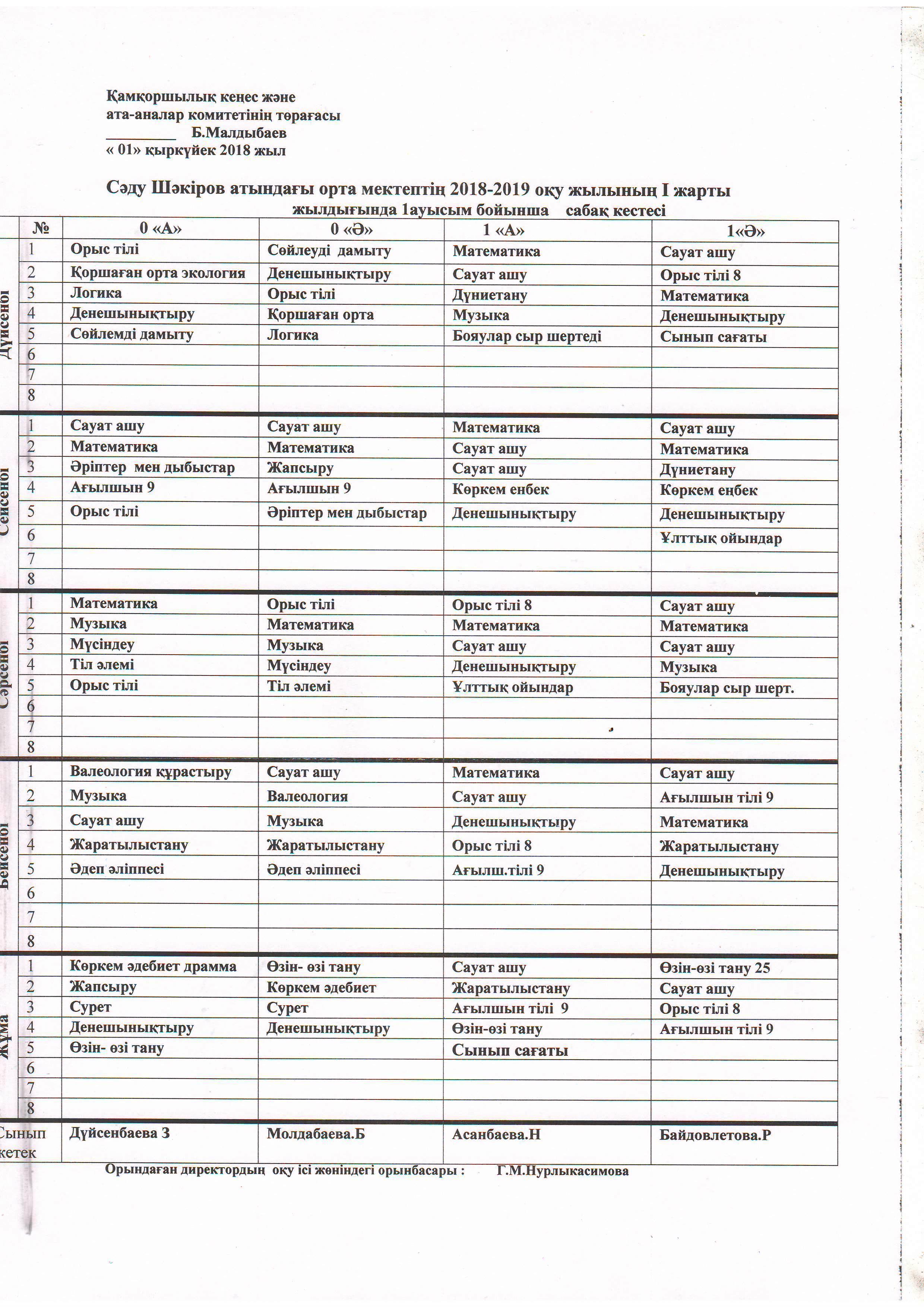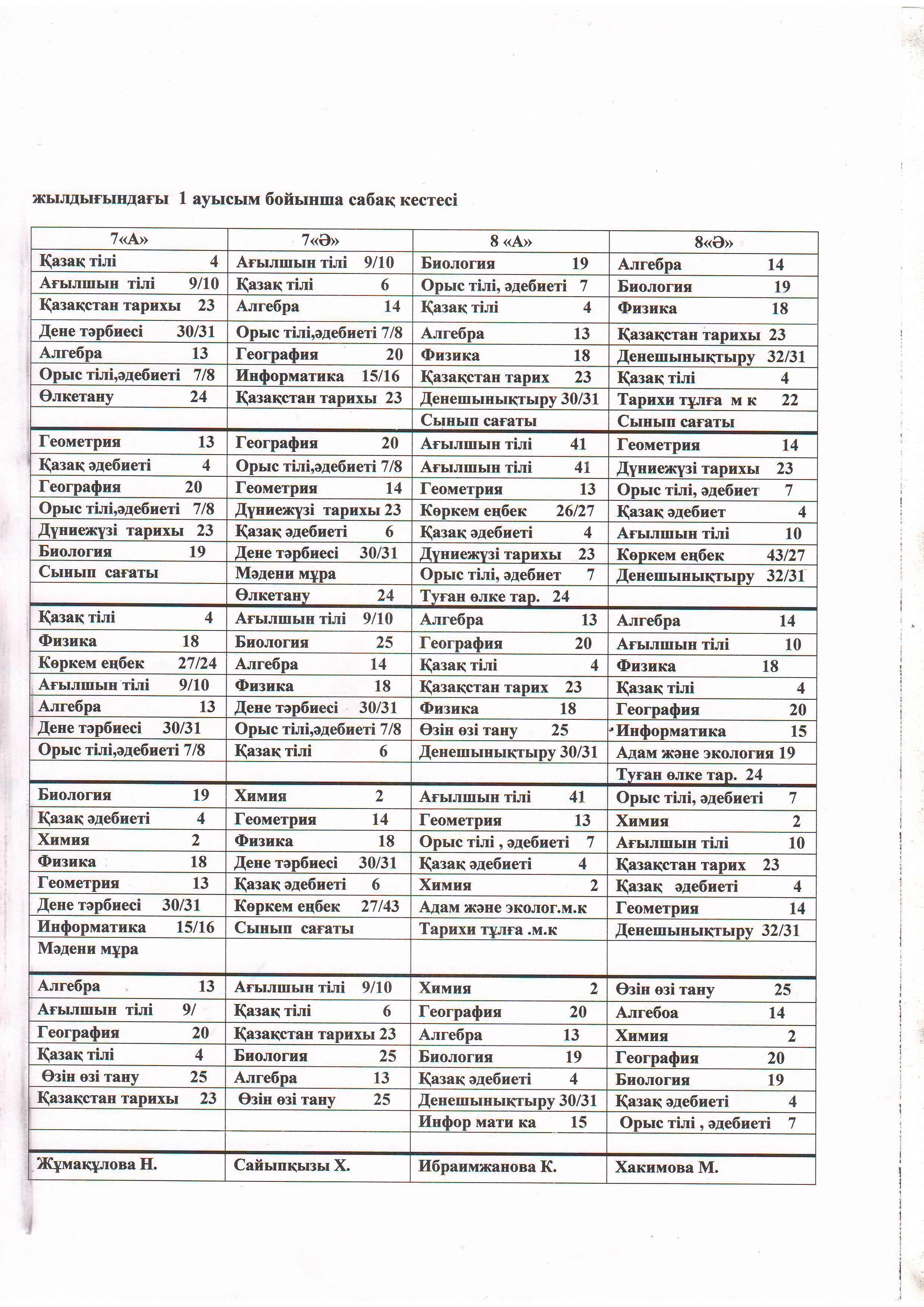 Cабақ кестесі » Средняя школа им.Шакирова. Шу ауданы. Шуский район