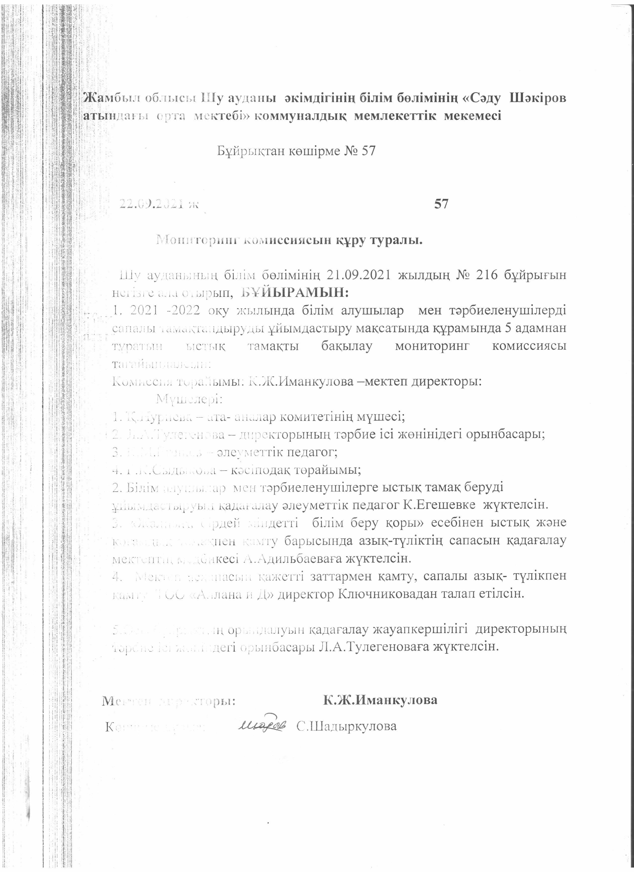 Мониторинг комиссиясын құру туралы » Средняя школа им.Шакирова. Шу ауданы. Шуский район