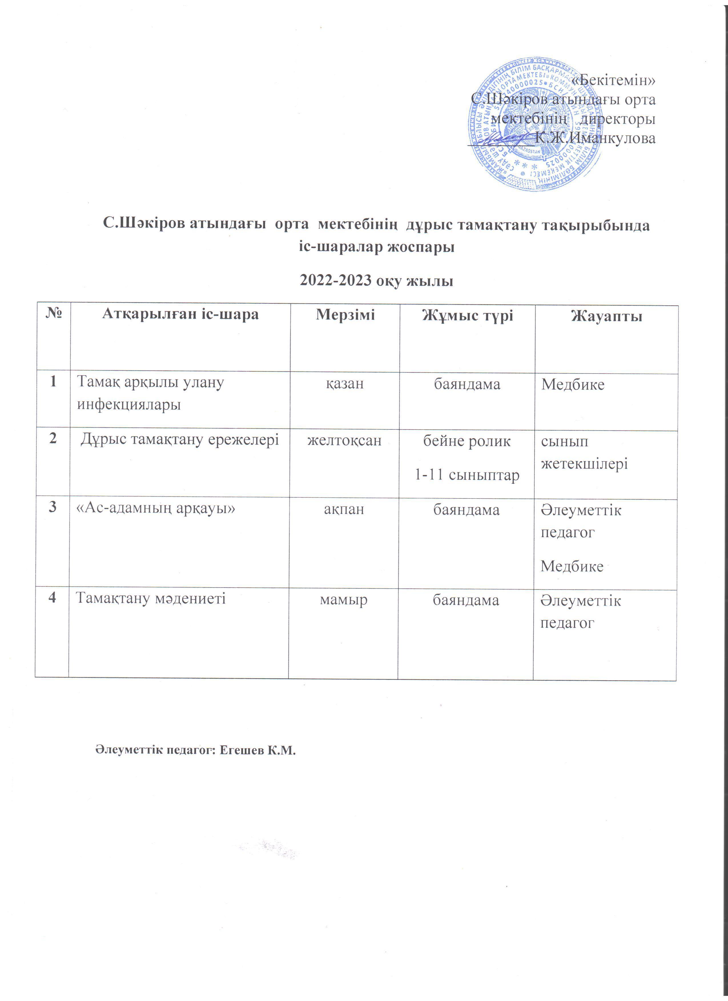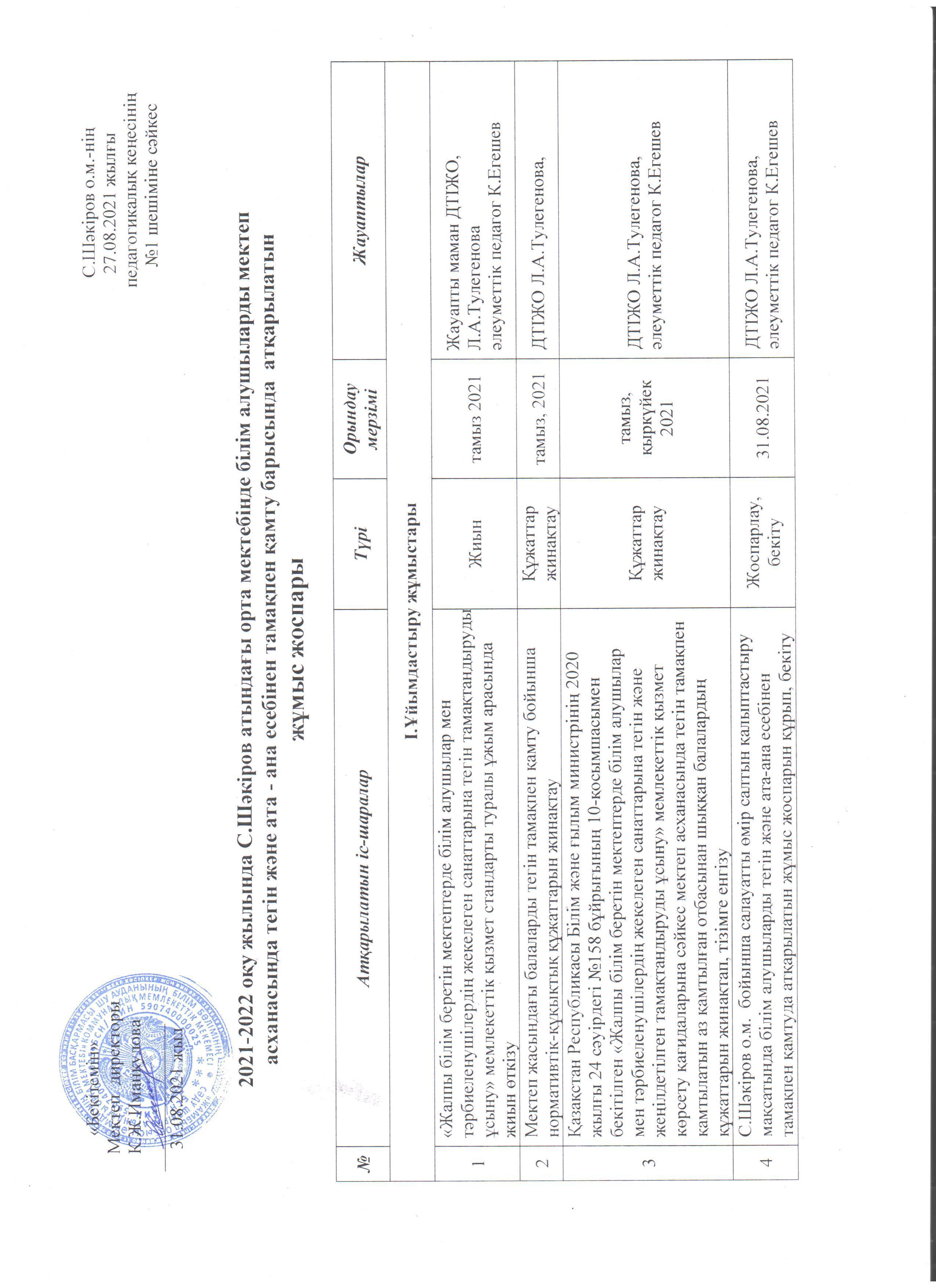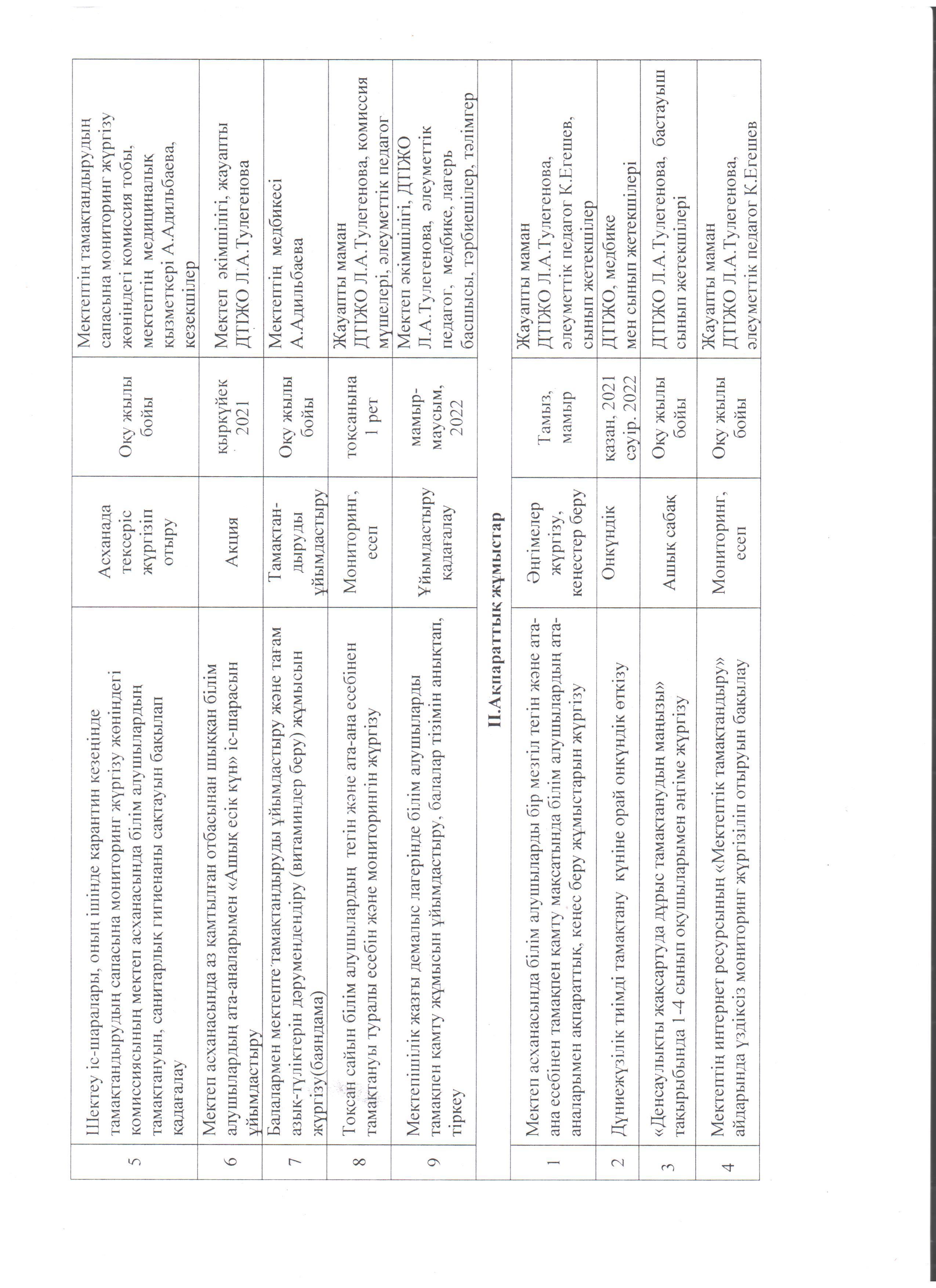 Ыстық тамақты ұйымдастыру туралы жылдық жоспары » Средняя школа им.Шакирова. Шу ауданы. Шуский район